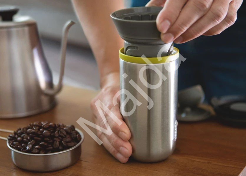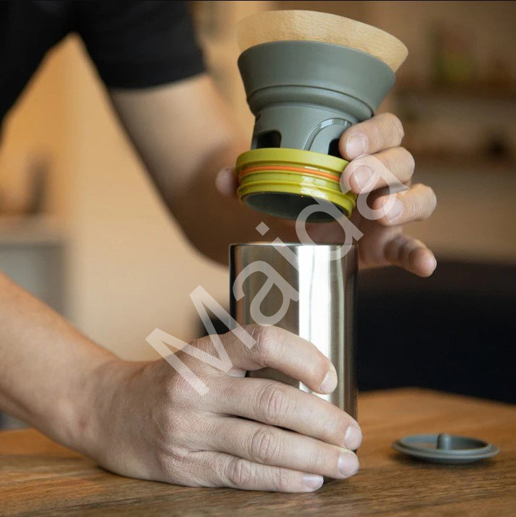 Jednoduše do kávovaru vložíte papírový filtr na filtrovanou kávu (součástí balení je 10 filtrů), nasypete do něj mletou kávu a zalijete horkou vodou. Kávovar poté přeměníte v nerez termohrnek a máte připravenou lahodnou kávu na cesty.