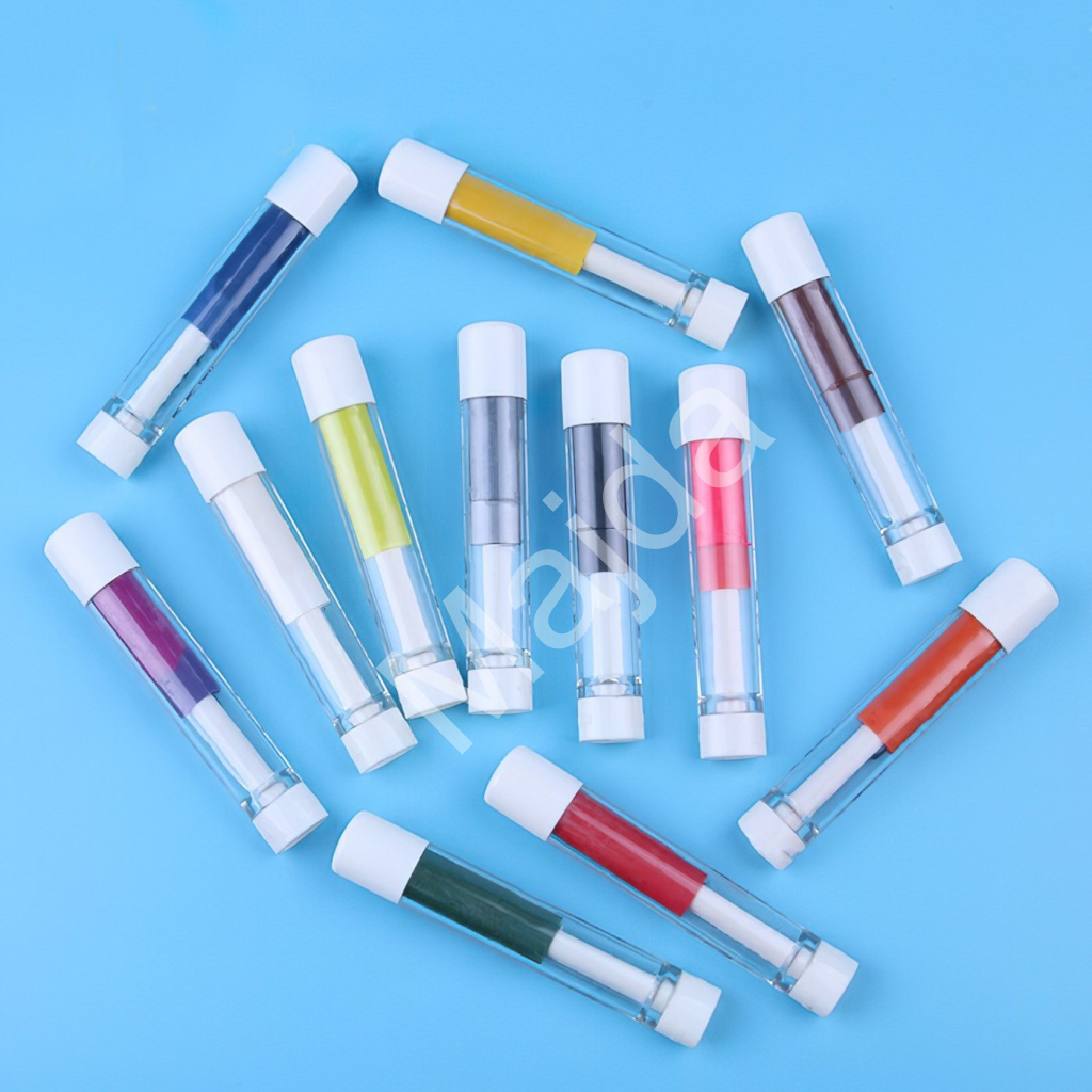 Tužky mají praktický výsuvný mechanismus a jsou uzavíratelné bílými krytkami, které zabraňují vysychání. Díky své krémové konzistenci barvy krásně přilnou k pokožce a poskytují syté krytí už při prvním tahu. Materiál je netoxický a šetrný k dětské pokožce, neobsahuje parfemace ani alergeny.