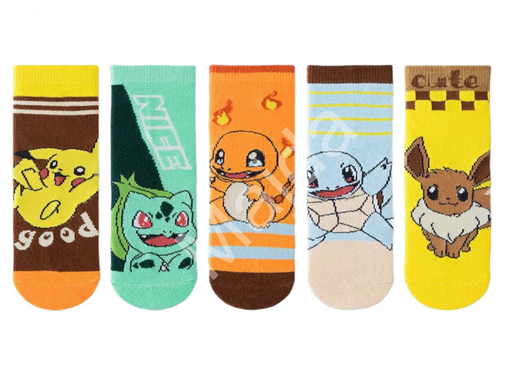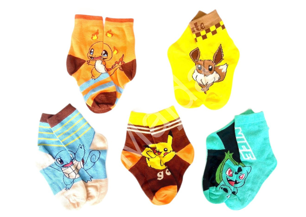 Balení obsahuje pět párů veselých ponožek s oblíbenými postavičkami jako Pikachu, Charmander nebo Bulbasaur. Každý pár má jinou barevnou kombinaci a výrazný motiv, který si děti snadno zapamatují a rády nosí.