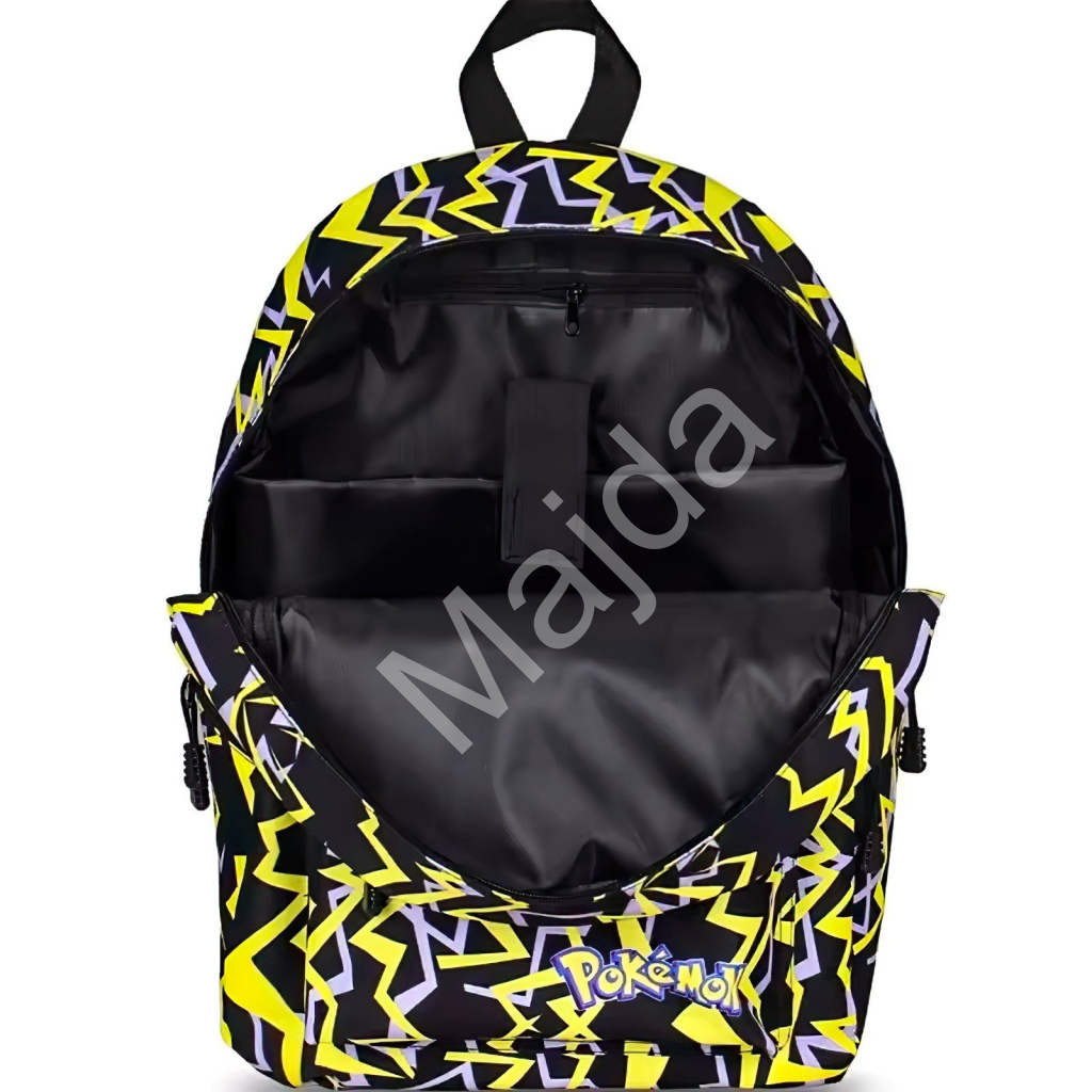 Výrazný černo-žlutý design s bleskovým vzorem a veselým Pikachu na přední straně dodává batohu energii a zábavný styl, který vynikne ve škole i na výletě. Batoh je vyroben z odolného a lehkého polyesteru, který je snadno omyvatelný a ideální pro každodenní používání. Hlavní přihrádka pojme učebnice, sešity i svačinu, zatímco přední kapsa na zip je ideální pro drobnosti nebo klíče.