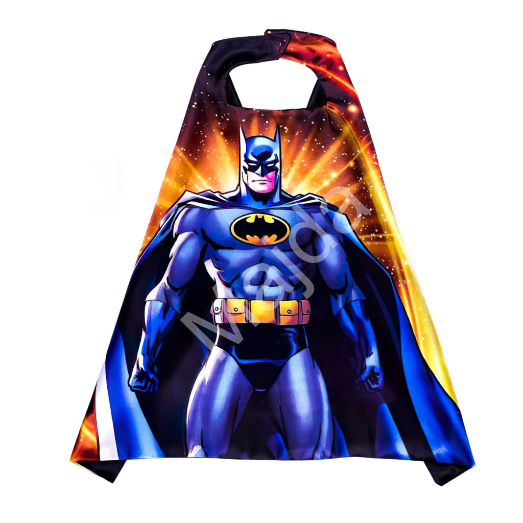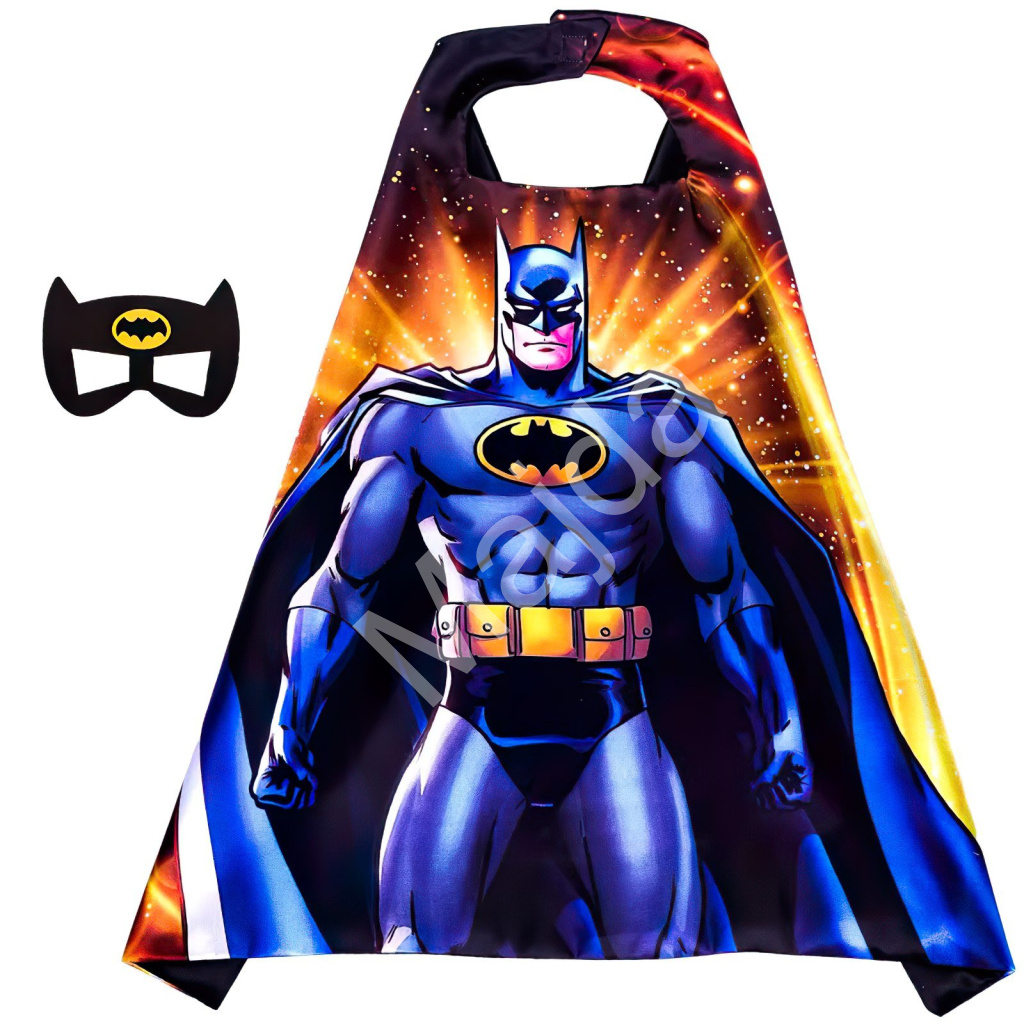 Kostým se skládá z pláště s realistickým potiskem slavného superhrdiny a černé masky s logem netopýra. Ideální volba pro karneval, narozeninovou oslavu nebo domácí hraní a dobrodružství.