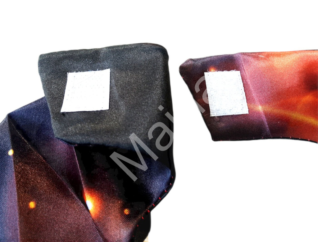 Maska z měkké plsti se pohodlně přizpůsobí tvaru hlavy a drží na elastické gumičce, takže vydrží i během aktivního pohybu. Kombinace pláště a masky tvoří praktický set, který lze snadno kombinovat i s dalšími doplňky nebo oblečením.