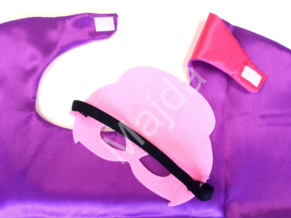 Zapínání na suchý zip zajišťuje snadné oblékání a svlékání, takže se dítě dokáže převléknout i samo bez pomoci rodičů. Maska je vyrobená z měkké plsti a díky elastické gumičce dobře sedí na obličeji a netlačí.
