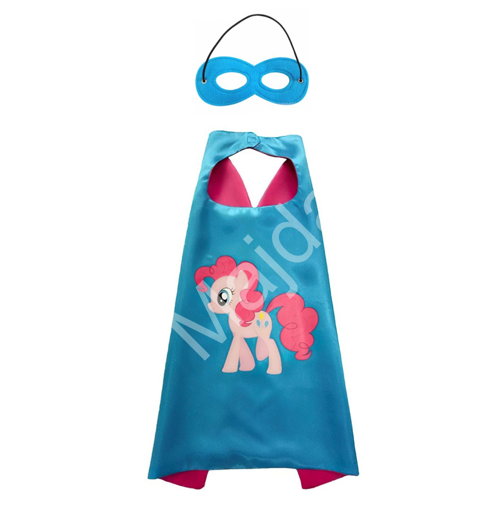 Hlavní hvězdou kostýmu je veselá a energická Pinkie Pie, která zaručeně rozzáří každý karneval či oslavu. Součástí balení je modrý plášť s obrázkem poníka a ladící maska na obličej.