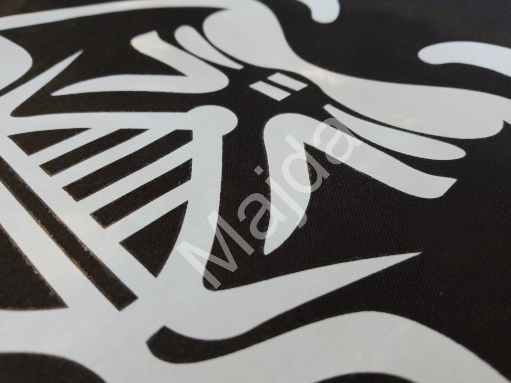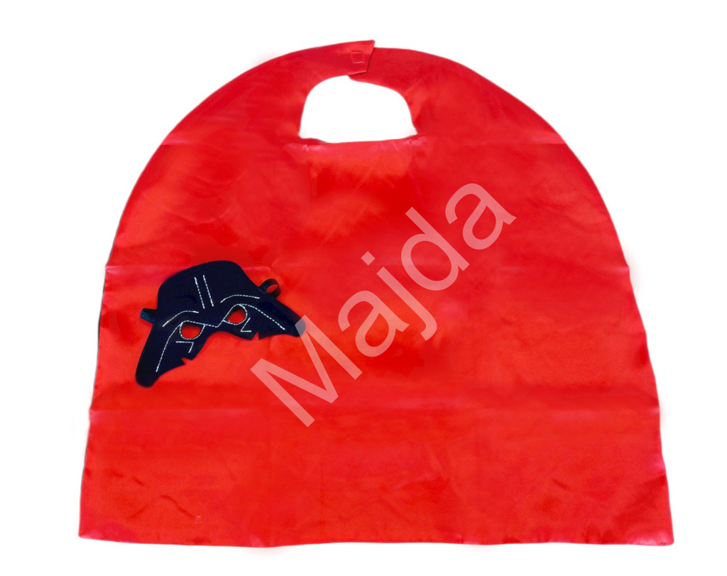 Součástí balení je černý plášť s výrazným bílým potiskem Darth Vaderovy helmy a ladící maska na obličej. Plášť má z vnitřní strany červenou podšívku, která dodává kostýmu kontrastní efekt a působivý vzhled. Zapínání za krkem je na suchý zip, takže se snadno obléká i svléká.