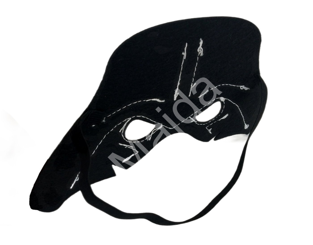 Kostým je vyrobený z lehkého, lesklého polyesteru, který je příjemný na dotek a zároveň odolný vůči poškození při hrách a dovádění. Maska je z měkkého plsti a drží pomocí pružné gumičky, která zajišťuje pohodlné nošení bez otlaků.
