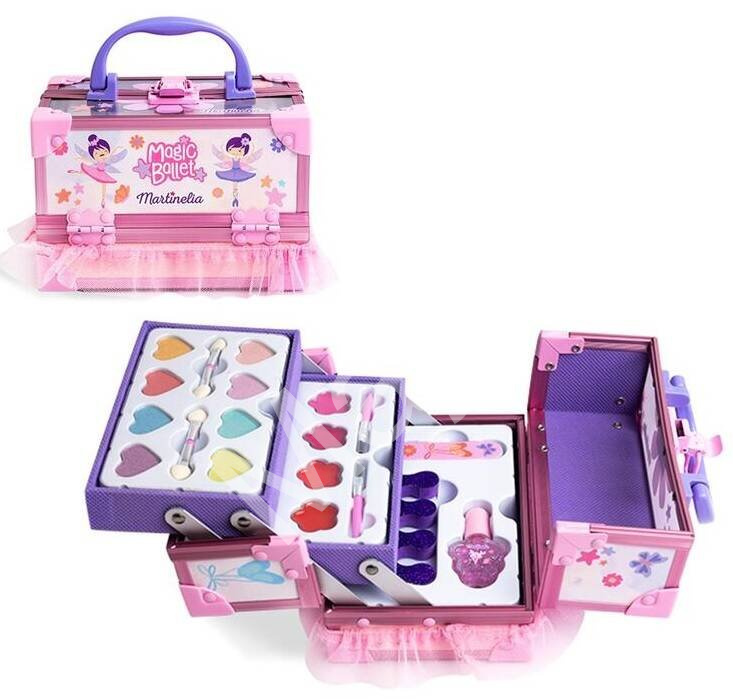 Dětský kosmetický kufřík Magic Ballet od značky Martinelia je dokonalým dárkem pro malé princezny, které se chtějí začít věnovat světu krásy a tvořivosti. Tento roztomilý kufřík v růžovo-fialovém designu s motivem baletky zaujme na první pohled svým elegantním a hravým vzhledem, který je doplněn jemným tylovým okrajem, připomínajícím baletní sukýnku. Je navržen tak, aby poskytl prostor pro dětské experimentování s bezpečnými a přátelskými kosmetickými produkty.