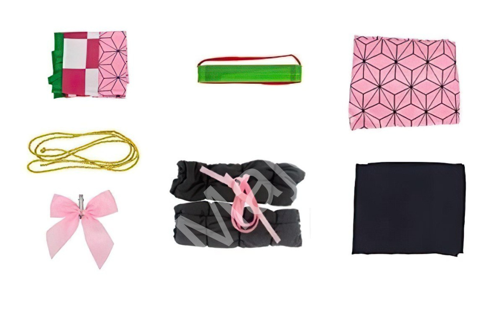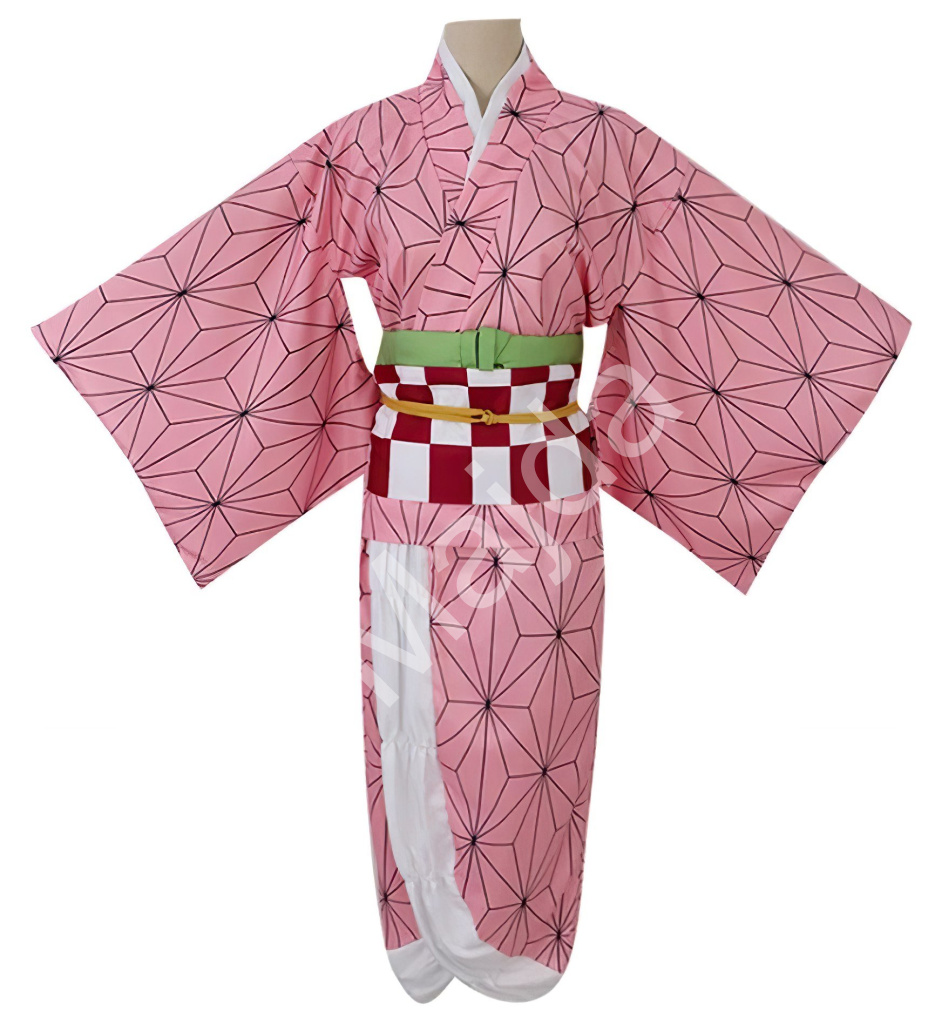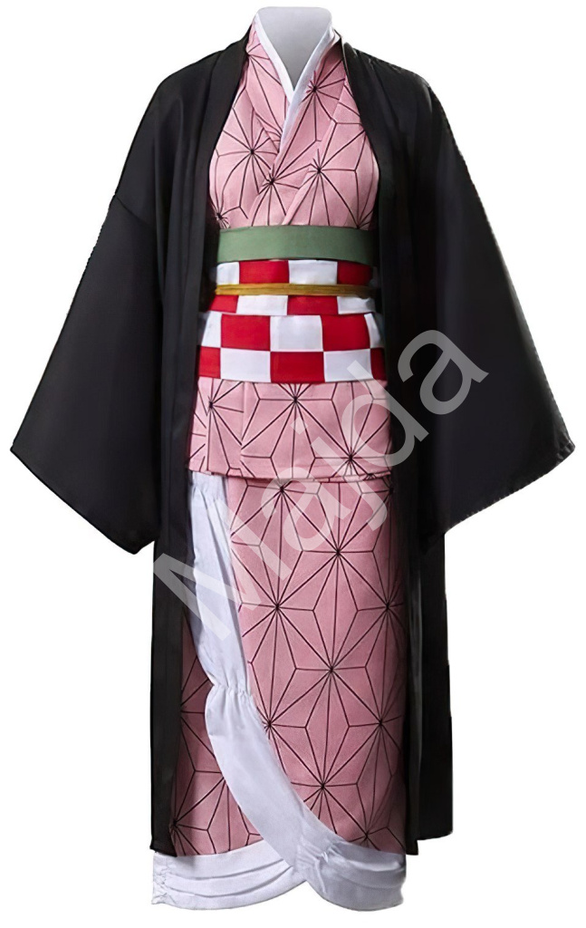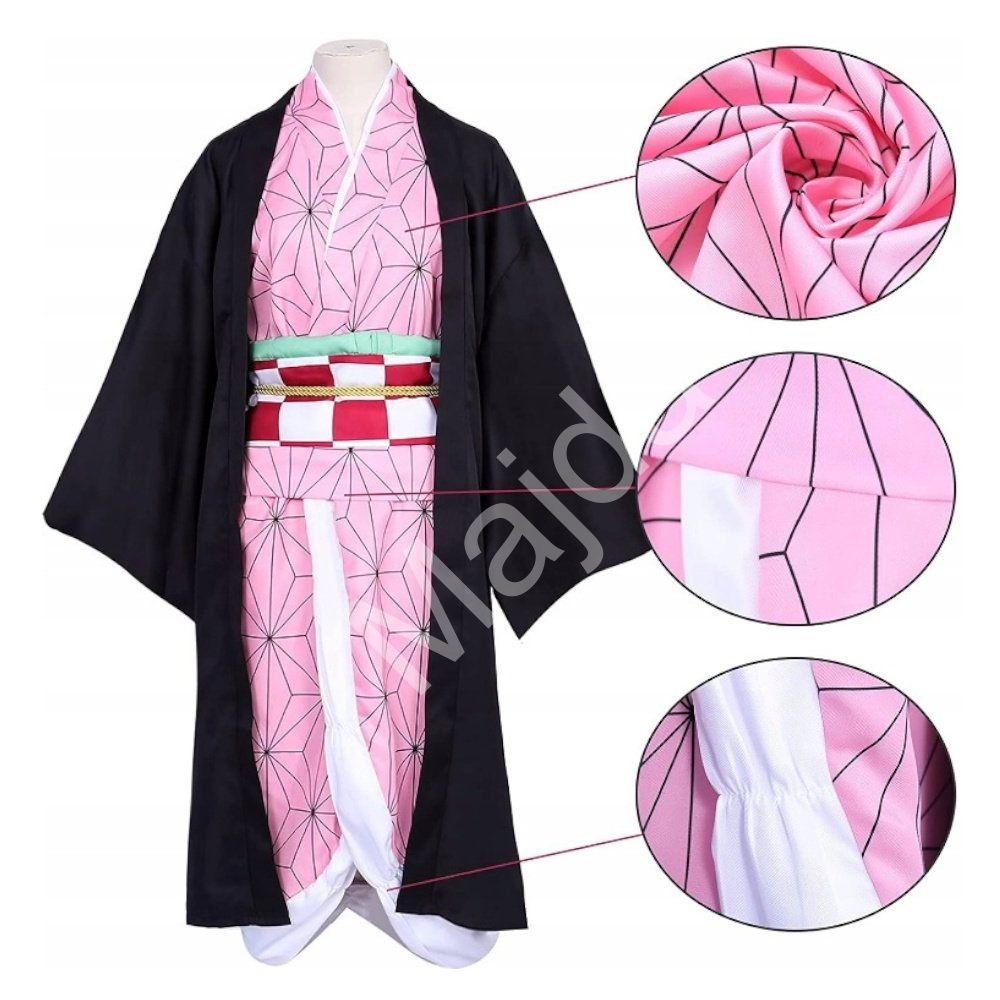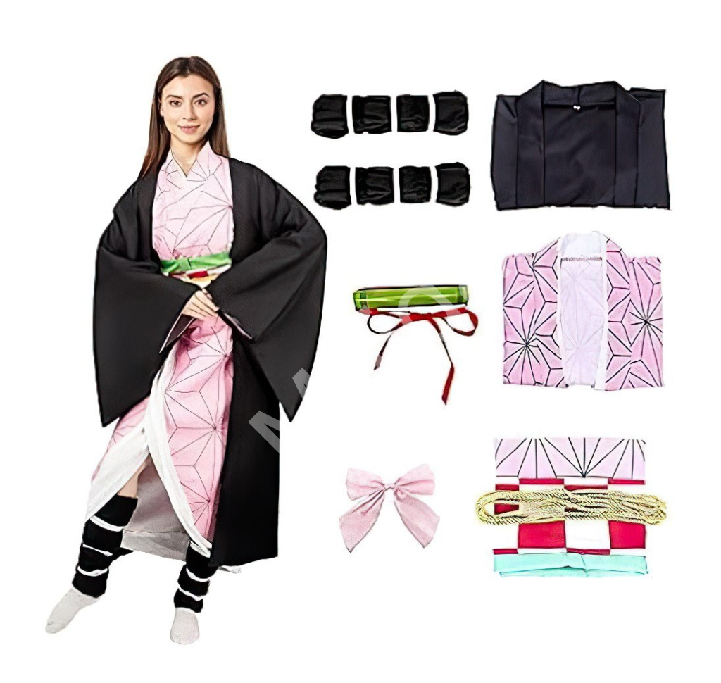 Kostým obsahuje kimono v růžové barvě s geometrickým vzorem, které je charakteristickým prvkem Nezuko a dodává kostýmu tradiční vzhled. Černý plášť s dlouhými rukávy, který doplňuje celý outfit a zajišťuje věrný dojem z postavy. Dále je součástí ozdobný pás a další doplňky, včetně roubíku na ústa, které jsou pro Nezuko ikonické, protože jí umožňují kontrolovat její démonickou povahu.