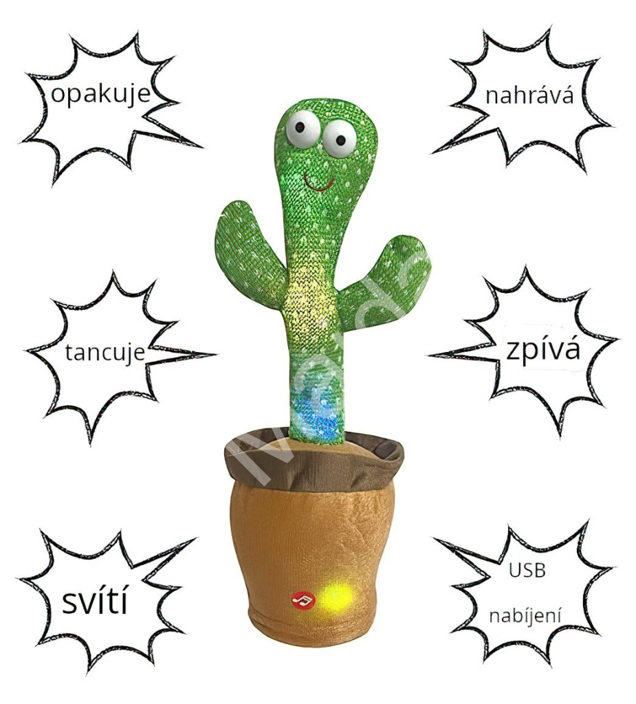 Interaktivní plyšový kaktus je veselá hračka, která rozesměje malé i velké. Po zapnutí začne zpívat, tančit a otáčet se v rytmu hudby.