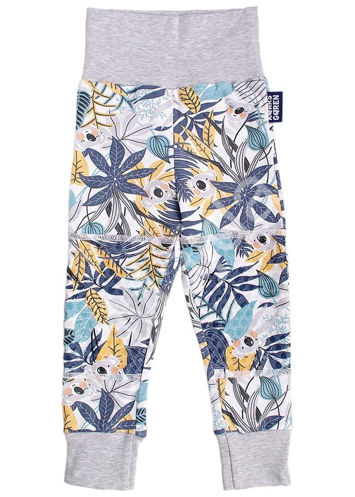 Kalhoty mají lem v pase i na nohavicích a přehnutím, nebo natažením je lze používat delší dobu než kalhoty klasické - vydrží i přes dvě velikosti, snadno se přizpůsobí díky pružnému lemu na pasu a nohavicích.