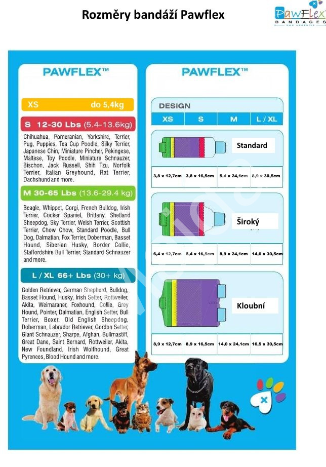 Pawflex bandáže jsou jemné a měkké pro nejmenší plemena a zároveň dost silné a odolné pro největší plemena psů.