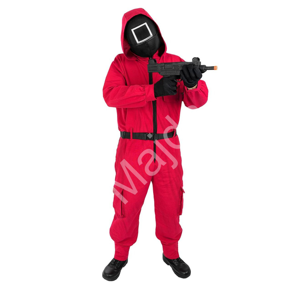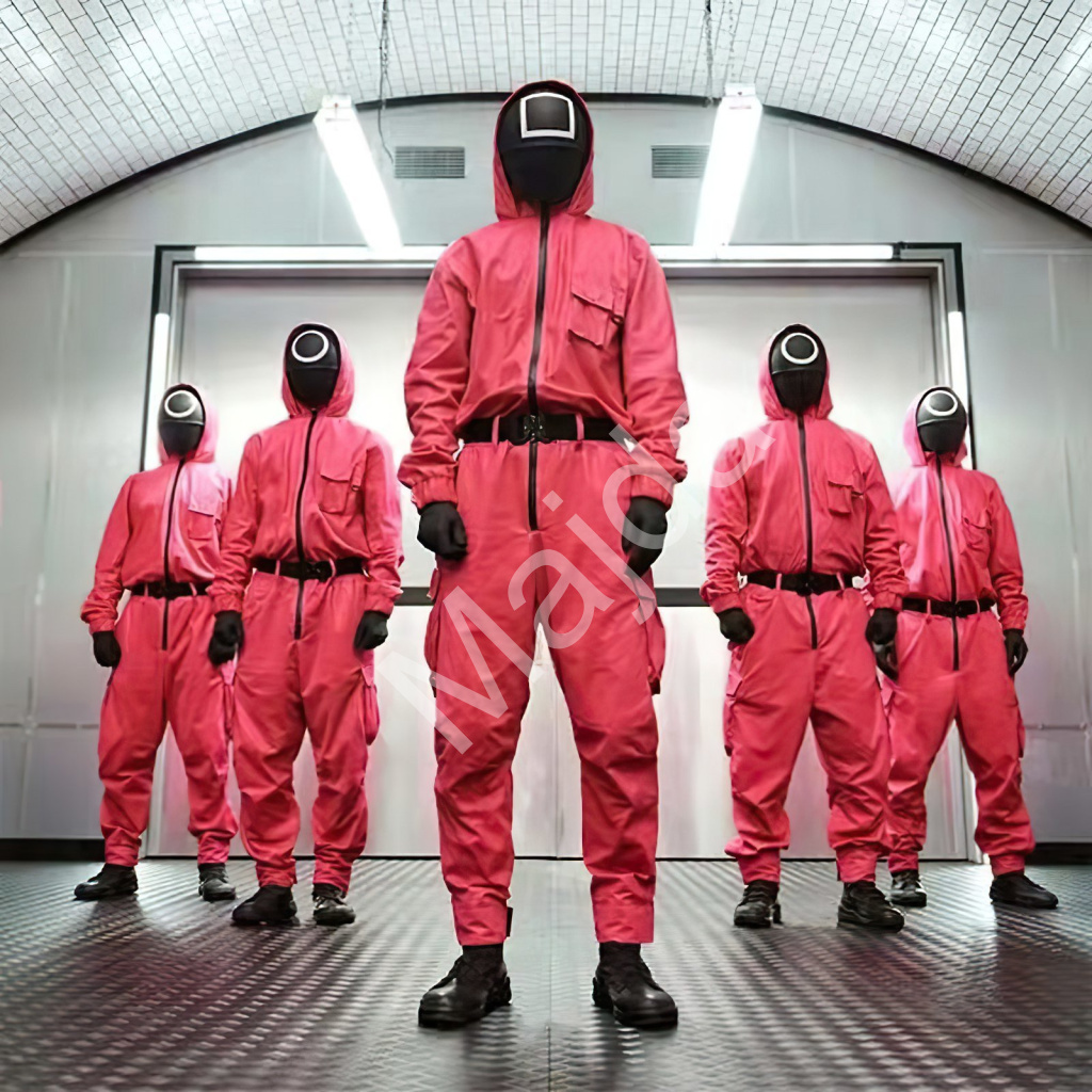 Ponořte se do světa napětí a strategie s kostýmem "dozorce". Tento kostým je inspirován ikonickou postavou dozorců, kteří v seriálu dohlížejí na smrtící hru plnou zvratů a nečekaných situací. Jeho výrazný červený overal s kapucí a černá maska s geometrickým symbolem okamžitě upoutá pozornost a dodá vám tajemný vzhled, který vzbudí respekt i zvědavost na každém tematickém večírku, karnevalu či cosplay akci.