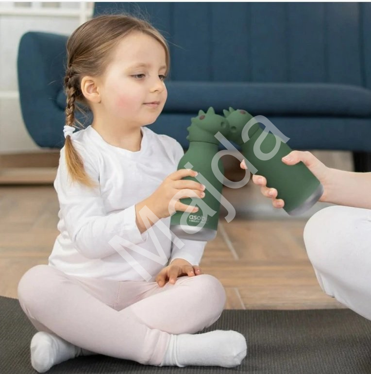Dětská termoska s roztomilým motivem dinosaura. Trojitá izolace, odolnost proti rozlití a praktické silikonové brčko.