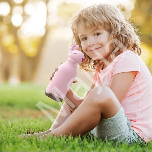 Dětská nerezová láhev o objemu 460 ml s trojitou izolací a roztomilým silikonovým obalem uchová nápoje v ideální teplotě, skvělá do školu a hry na čerstvém vzduchu.