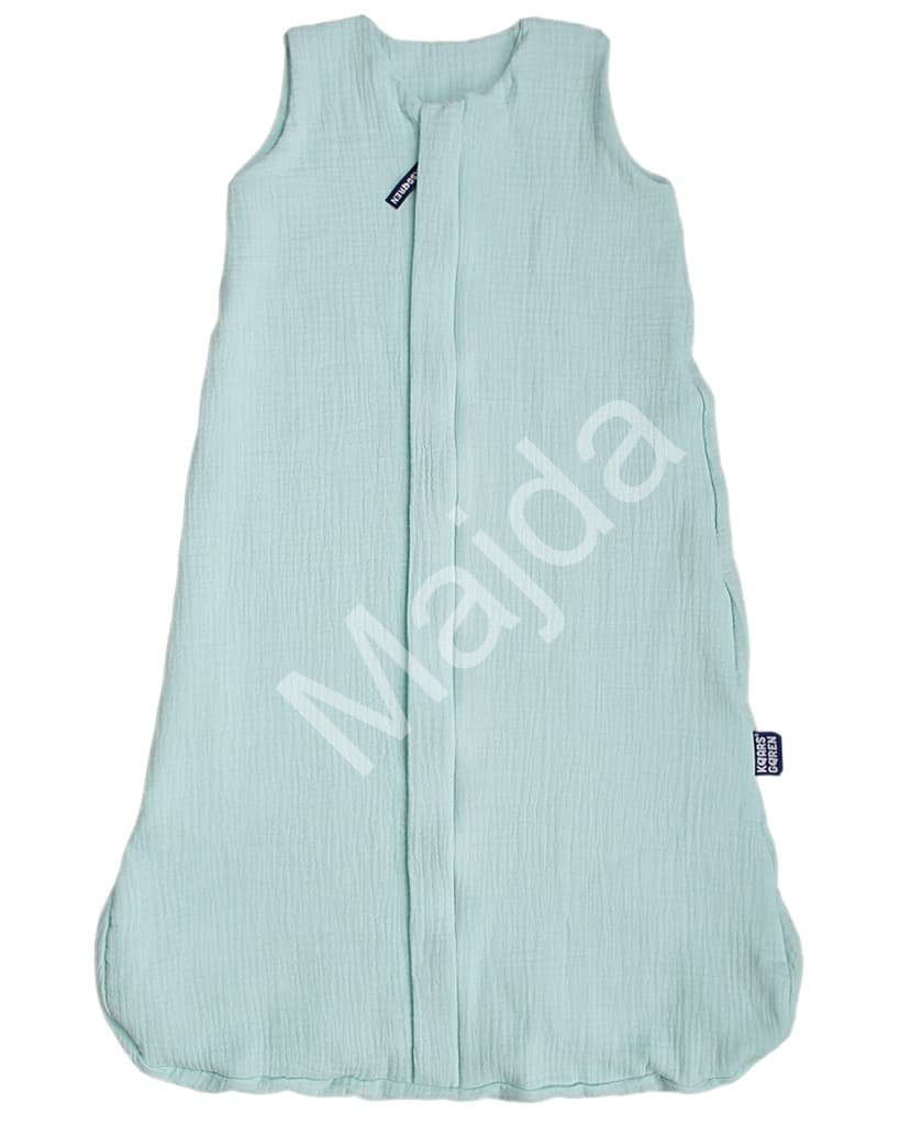 Lehký letní spací pytel z mušelínu v mentolové barvě.