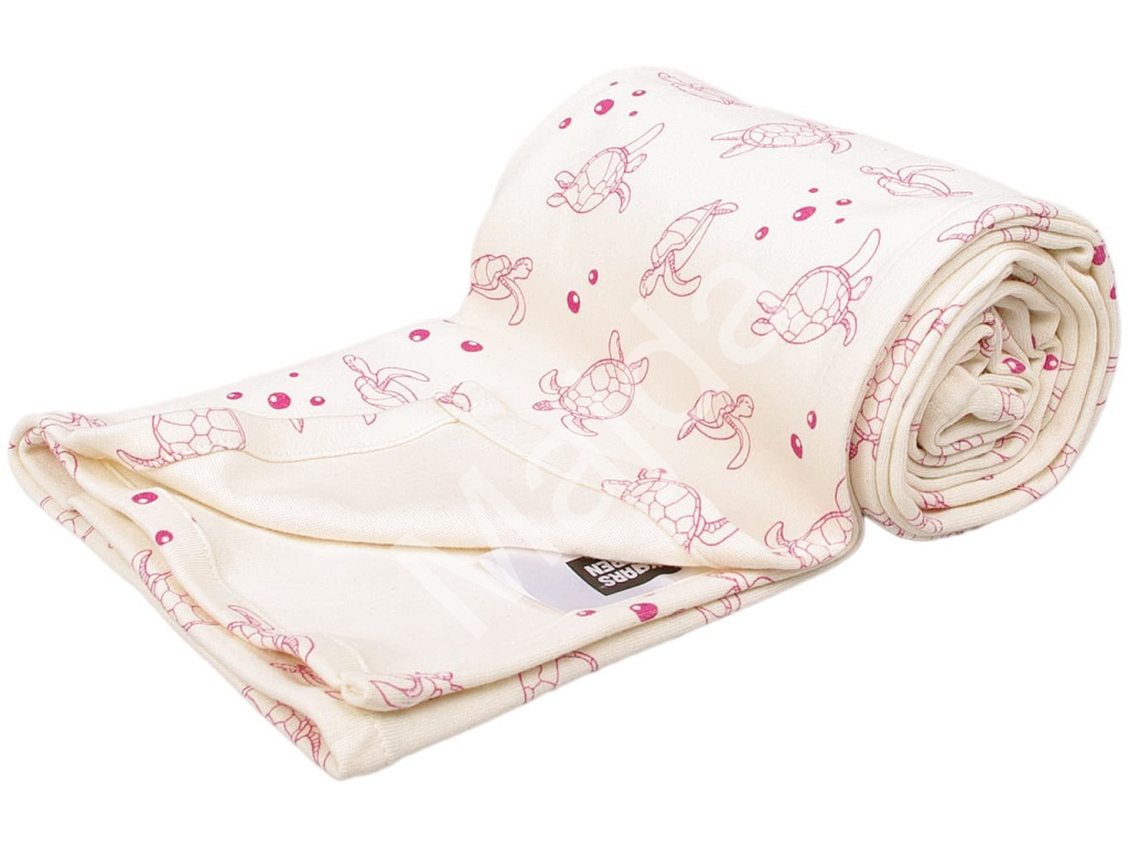 Lehká a prodyšná deka z 100% bio-bavlny s motivem červené želvičky. Hypoalergenní, GOTS certifikovaná příze, ideální na léto.