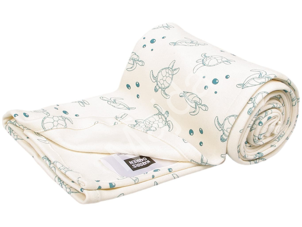 Lehká a prodyšná deka ze 100% bio-bavlny s motivem zelených želviček.