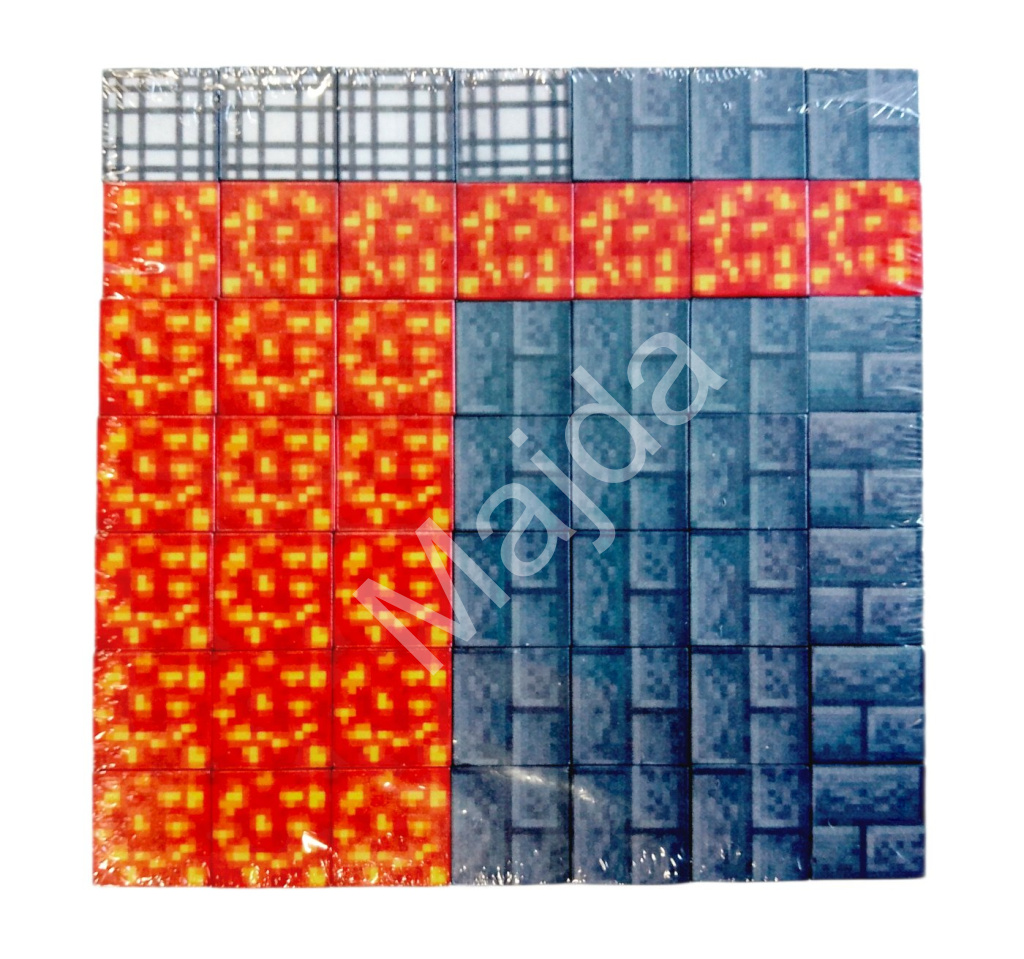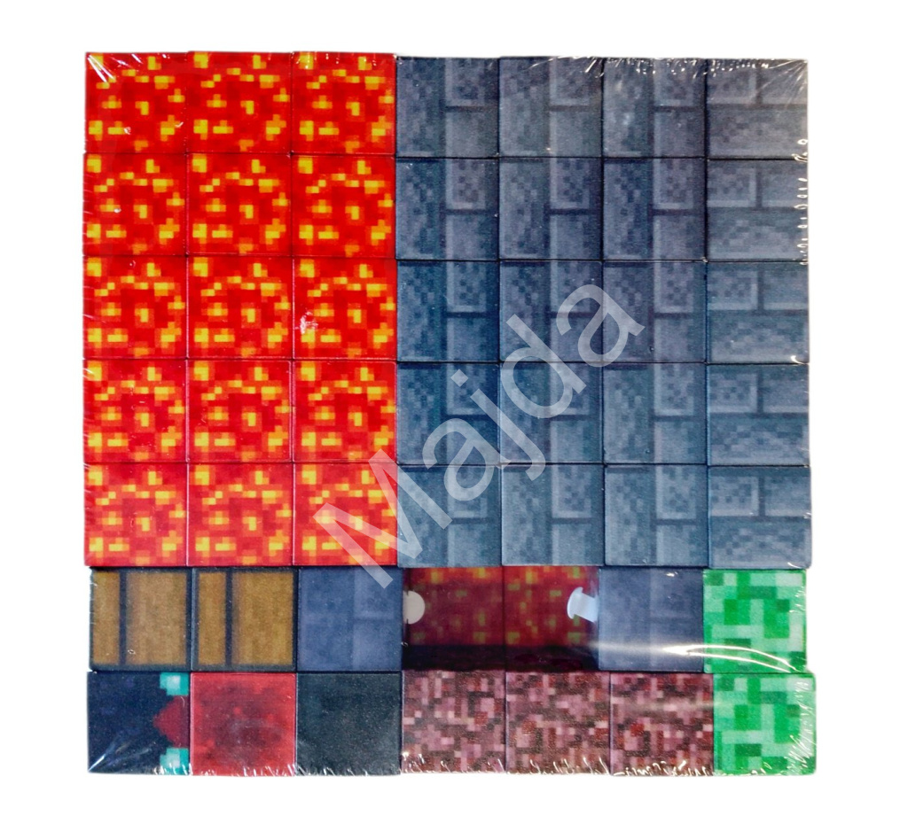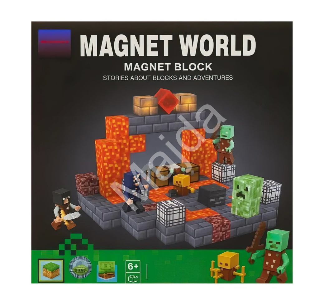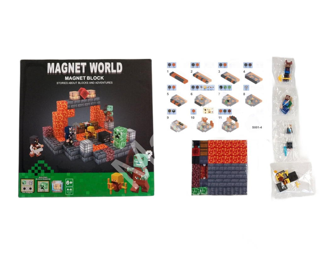 Sada obsahuje různé bloky pro stavbu scén s lávovými sloupy, truhlami s pokladem a nepřáteli, jako jsou Creeper, zombíci a skeleton. Nechybí ani hrdinové s krumpáčem a mečem. Všechny dílky jsou magnetické, snadno se skládají a přestavují.