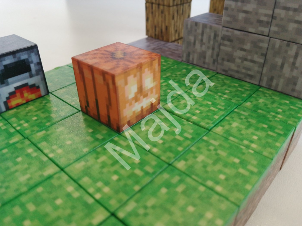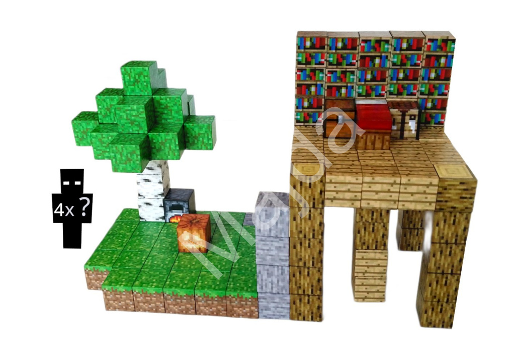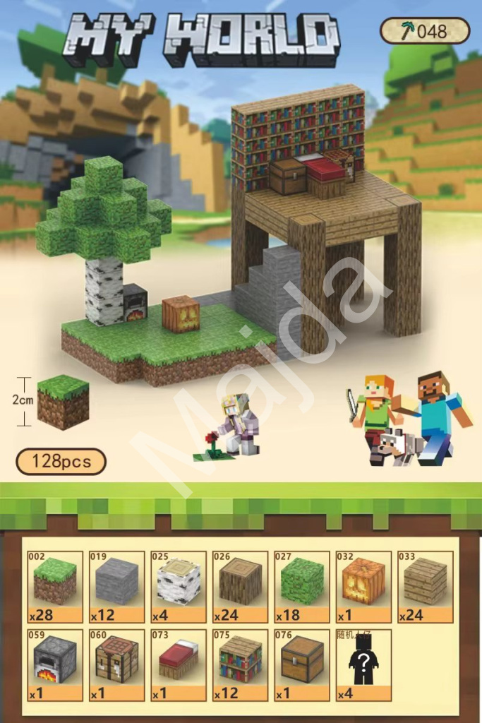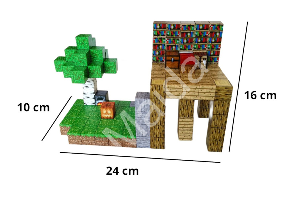 Každý dílek je vyroben z kvalitního, zdravotně nezávadného plastu s odolným magnetickým jádrem. Realistické potisky odpovídají vizuálnímu stylu Minecraft a podporují autentický zážitek ze stavění. Strom se skládá z hnědých a zelených bloků a působí jako přírodní dominanta celé stavby, zatímco knihovna nabízí prostor pro imaginární kouzla a přípravy lektvarů.