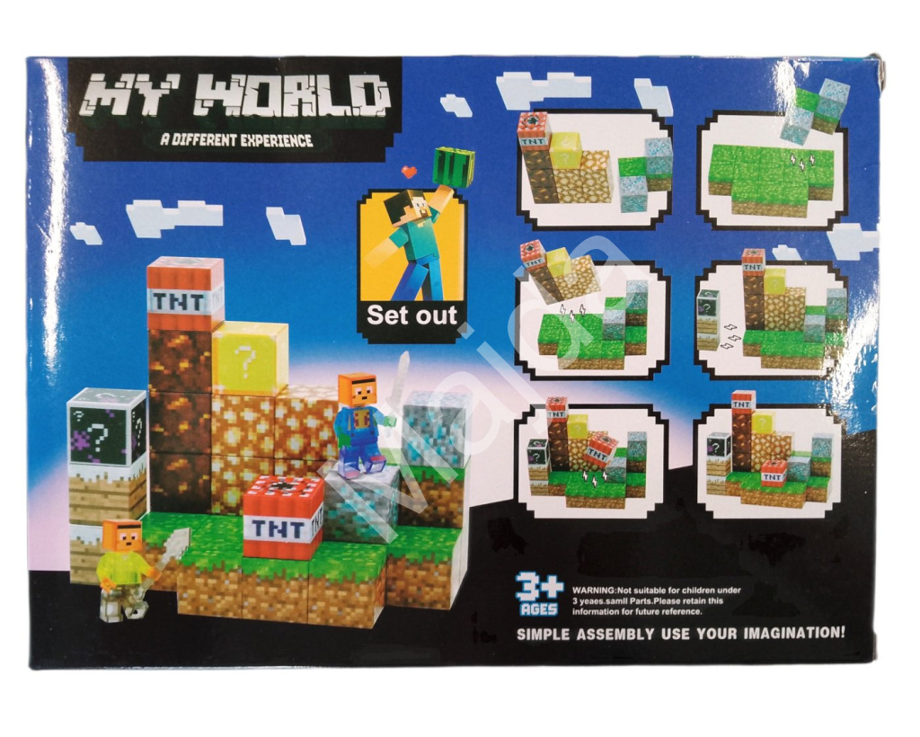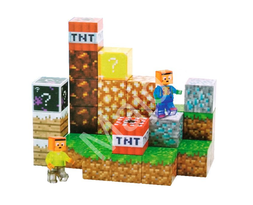 Stavebnice obsahuje 32 magnetických dílků a dvě postavičky inspirované známými herními hrdiny. Nechybí ani ikonické bloky jako TNT, glowstone, tráva, hlína nebo tajemné bloky s otazníkem. Všechny dílky mají realistický pixelový design a jsou snadno kombinovatelné – děti si tak mohou sestavit vlastní malý svět plný fantazie.