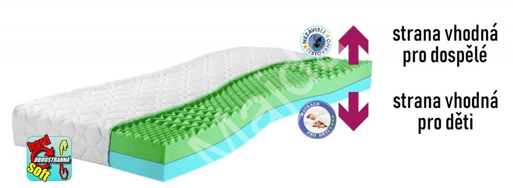 Speciálně navržená matrace která s vámi vyroste z dětství až do dospělosti. Oboustranná matrace kdy jedna strana je vhodná pro děti a druhá strana pro dospělé.
