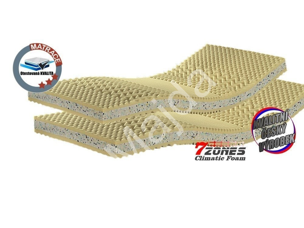 Oboustranná sendvičová matrace se střední, spíše tvrdší tuhostí vhodná jak pro děti tak pro dospělé osoby se středovou výztuhou pomocí RE pěny. Obě vrstvy tvořeny kvalitní PUR pěnou profilovanou do 7 anatomických zón, která zaručí