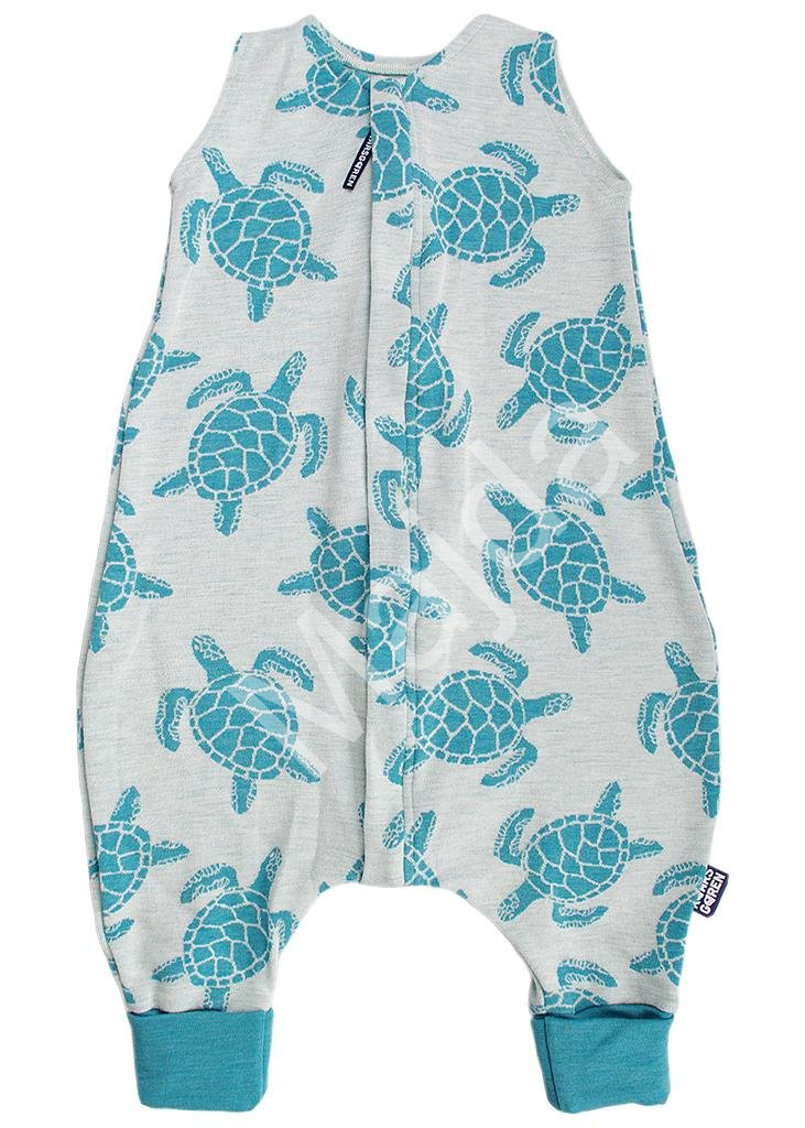 Letní merino spací pytel s nohavicemi 80 cm s motivem aqua želviček je vhodný pro aktivní děti, které během noci kopou nohami a přetáčí se, nožičkovém spacáčku se nemohou přetočit. Až miminko povyroste není nutné hned kupovat větší spací pytel, protože může spát s nohami venku a zároveň až začne chodit není nutné vždy spací pytel sundavat.