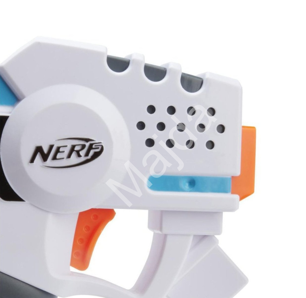 Díky svému futuristickému vzhledu v bílo-modro-oranžovém provedení zaujme na první pohled a je ideální pro rychlé akční přestřelky doma i venku.