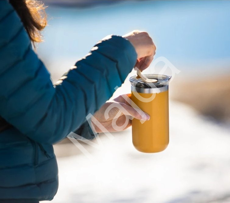 Balení obsahuje 300 ml termo-hrnek z nerezové oceli a nepropustným víčkem pro pohodlné pití.