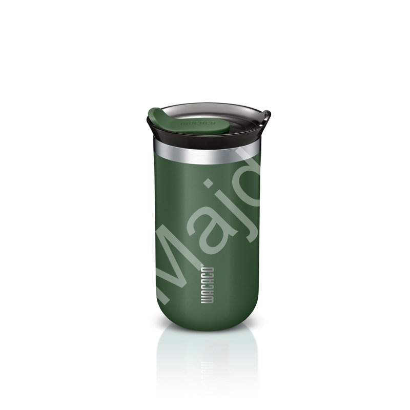 Termohrnek Octaroma od Wacaco. Objem: 300 ml. Vejde se do většiny držáků na pohár v autě. Nápoj udrží horký po dobu 5 hodin.