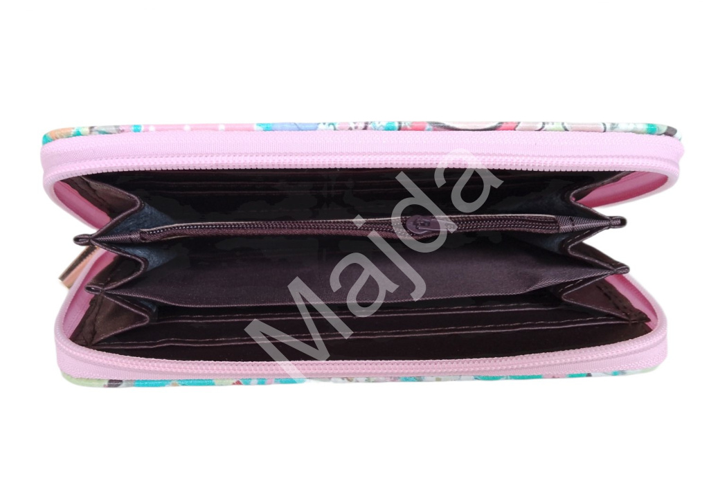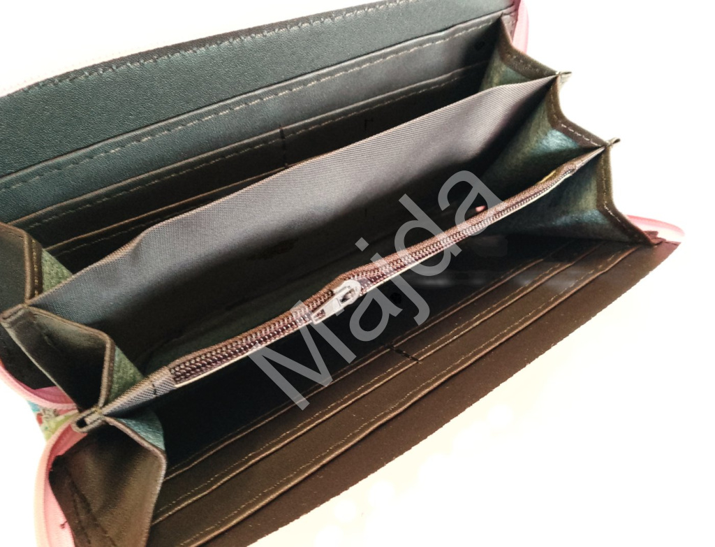 Peněženka je vyrobena z kvalitní syntetické kůže, která je odolná a zároveň příjemná na dotek. Uvnitř najdete podšívku z pevné textilie, která chrání obsah před opotřebením. Povrch je snadno omyvatelný a dlouhodobě si zachovává svůj sytý barevný vzhled. Interiér nabízí promyšlený úložný prostor – několik přihrádek na karty, dvě větší přihrádky na bankovky a kapsičku na zip pro mince. Díky zipovému uzavírání po celém obvodu zůstane vše bezpečně uvnitř, ať už peněženku nosíte v kabelce nebo batohu.