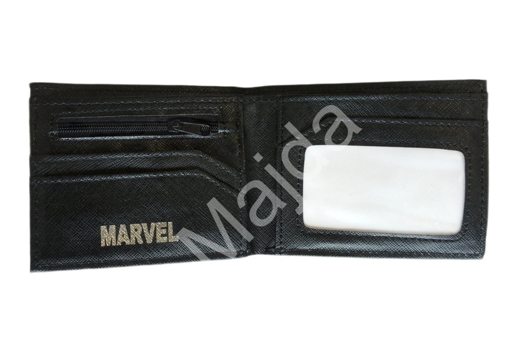 Peněženka je vyrobena z odolného syntetického materiálu s jemnou strukturou, který vyniká dlouhou životností a snadnou údržbou. Vnitřní část je provedena v černé barvě a ozdobena decentním logem Marvel, což potvrzuje její oficiální licencovaný původ. Uvnitř peněženky se nachází praktická průhledná kapsa na průkaz nebo fotografii, několik slotů na karty a malá kapsička na zip, vhodná na drobné mince. Díky přehlednému uspořádání bude mít každý hrdina své finance pod kontrolou, ať už ve škole nebo na výpravě za dobrodružstvím.