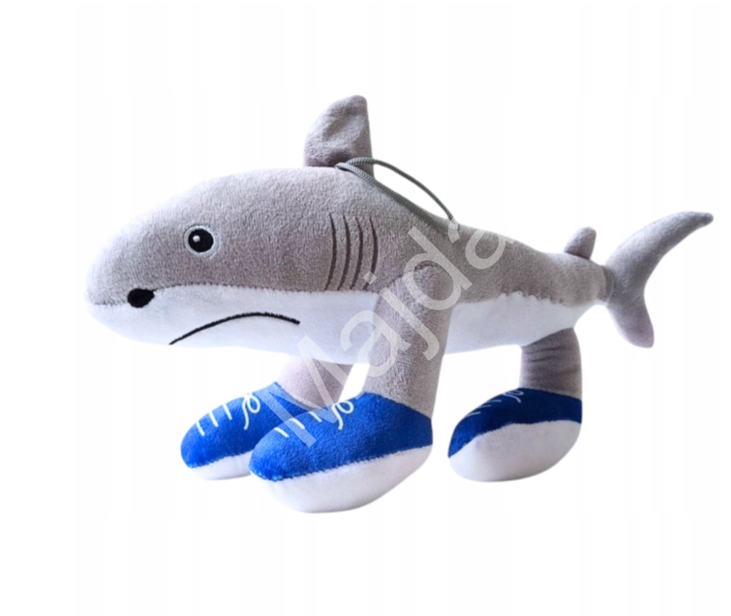 Charakteristickým prvkem jsou tři nohy s modrými botami, které dodávají postavičce roztomile bizarní vzhled. V kombinaci s jednoduchými detaily obličeje a ploutvemi působí hračka jako veselý výtvor dětské fantazie nebo internetové kultury.