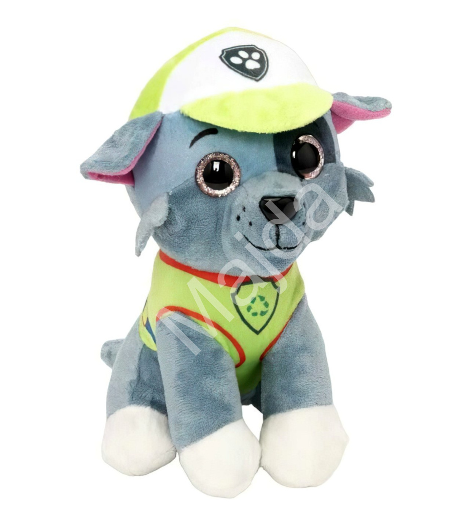 Plyšová hračka Rocky z Tlapkové patroly je ideálním kamarádem pro všechny děti, které milují dobrodružství a týmovou spolupráci. Rocky je pejsek–opravář, který se stará o recyklaci a šikovně opravuje vše, co je potřeba. Ve své zelené uniformě a čepici je připraven kdykoliv zasáhnout.