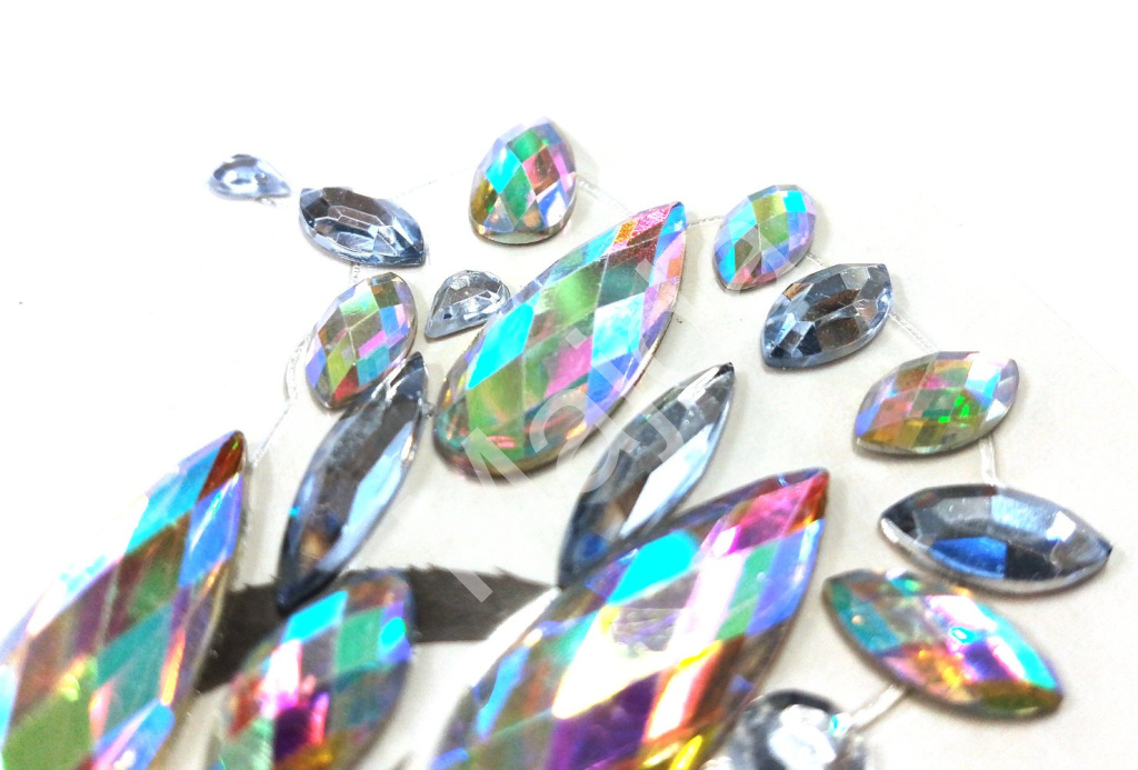 Vyrobena z kvalitních akrylových materiálů, které jsou lehké, ale přesto velmi efektní. Samolepicí vrstva je šetrná k pokožce a umožňuje pohodlné nošení po celý večer. Odstranění je snadné a nezanechává stopy ani podráždění.