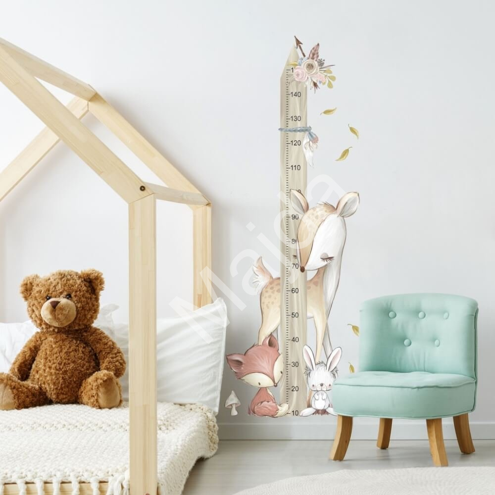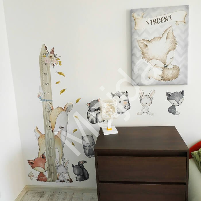 Dětský nalepovací metr je textilní samolepka na zeď dětského pokoje s lesními zvířátky. Sledujte, jak vaše dítě roste.