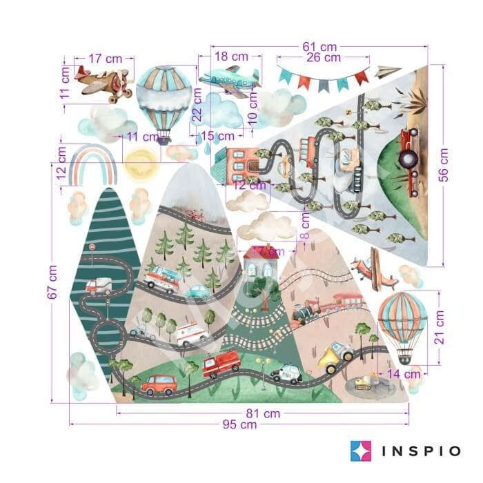 Samolepky, na kterých najdete kopce, autíčka a balóny vytvoří cestovatelskou atmosféru ve vašem dětském pokojíčku. Rozměry po nalepení samolepky (umístění dle obrázku) jsou přibližně V. 120 x Š. 138 cm. Samotné kopce (bez… Více informací