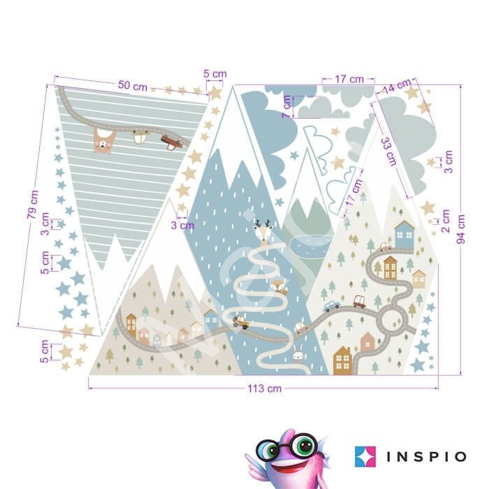 Textilní samolepky na zeď INSPIO je možné několikrát přelepit a jsou vodou omyvatelné. Pohádkové kopce jsou vhodné do každého pokoje. Rozměry po nalepení samolepky (umístění dle obrázku) jsou přibližně V. 180 x Š. 190 cm.… Více informací