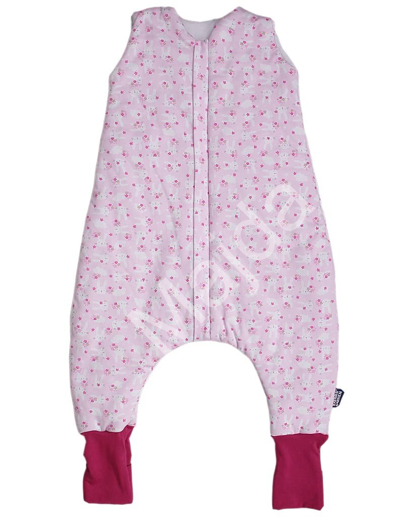 Nožičkový spací pytel v jemně růžovém provedení se zajíčky je ideální pro klidný spánek i pohodlné denní nošení. Díky nohavicím poskytuje dítěti volnost a zároveň příjemné teplo.